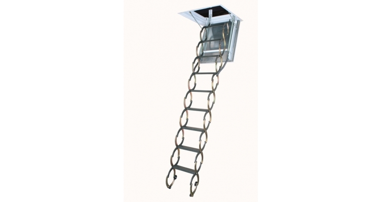 В ассортименте FAKRO есть также и складные чердачные лестницы «ножничного» типа. Такие модели выполнены из металла, защищенного от коррозии. Поставляются совместно с потолочным коробом, позволяющим хранить сложенную чердачную лестницу «в потолке».