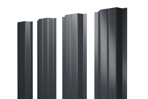 Описание товара: "Штакетник П-образный А с прямым резом 0,5 Satin Мatt RAL 7024 мокрый асфальт"