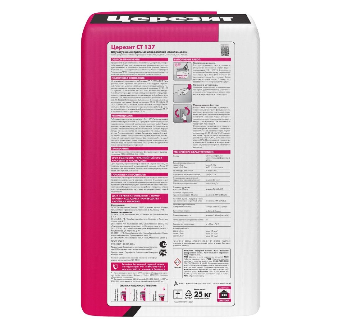 Описание товара: "Штукатурка Ceresit СТ 137 1,0 мм "камешковая" под окраску (25 кг)"